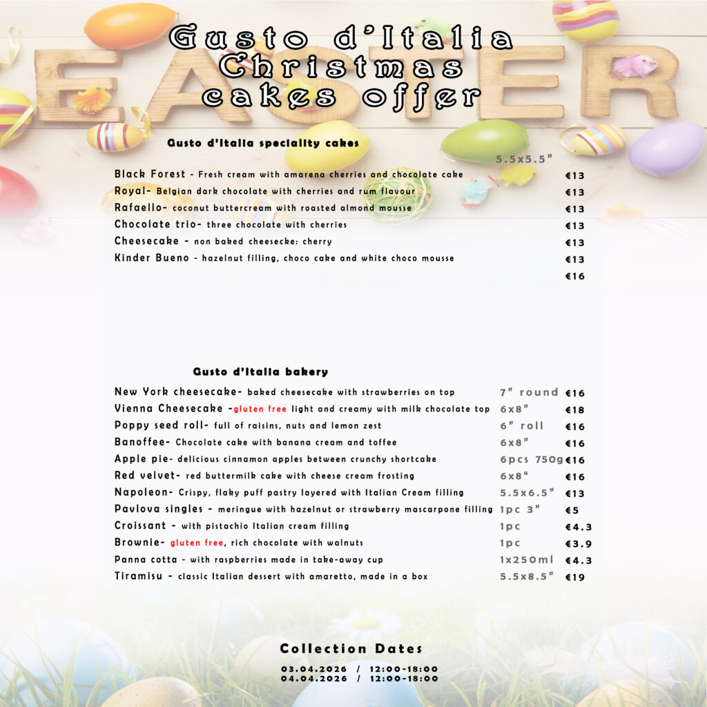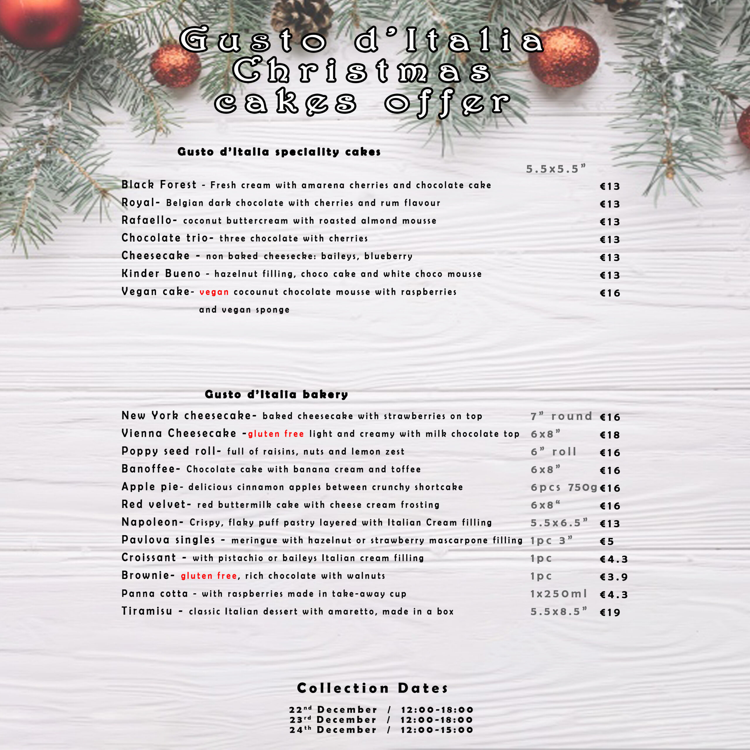 Please be kindly advised that you can order your festive cakes online 2 days prior to collection.